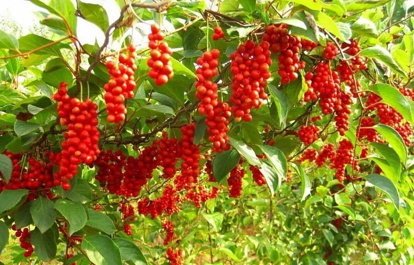 - Лимонник китайский. Это многолетнее растение с целебными свойствами широко известно в восточной медицине благодаря своим полезным ягодам. Жители Китая верят в способность плодов лечить многие заболевания и продлевать молодость организма. Листья, кора и семена кустарника также имеют целебное воздействие на различные органы человека. В начале лета растение расцветает белым цветом, а в конце августа начинают появляться яркие красные плоды. Длинные гибкие стебли растут практически на любой опоре и способны стелиться по земле. Кустарник хорошо переносит морозы и может расти в условиях холодного климата.