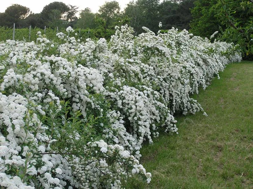 Спирея. Второе название растения – таволга. В конце весны спирея выглядит густо покрытой снегом, такое впечатление создают мелкие белые цветочки на ее ветвях. Куст неприхотлив в уходе и хорошо приживается на разных типах почв. Высота растения достигает 2 метров, листва мелкая, светлого зеленого цвета. Когда таволга зацветет, нужно сразу же заняться обрезкой. Старые побеги следует удалить, чтобы кустарник не разрастался. В противном случае цветение будет становиться более слабым.