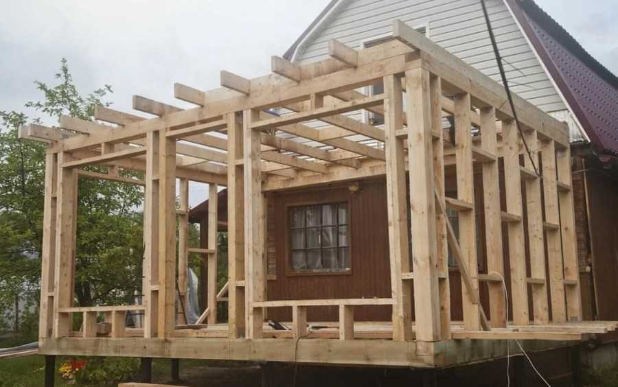 Каркасные веранды отличаются своей универсальностью — они подходят для строений любого типа. Стены позже обшивают панелями для фасадов, выбрав структуру, подходящую для материала основного здания.