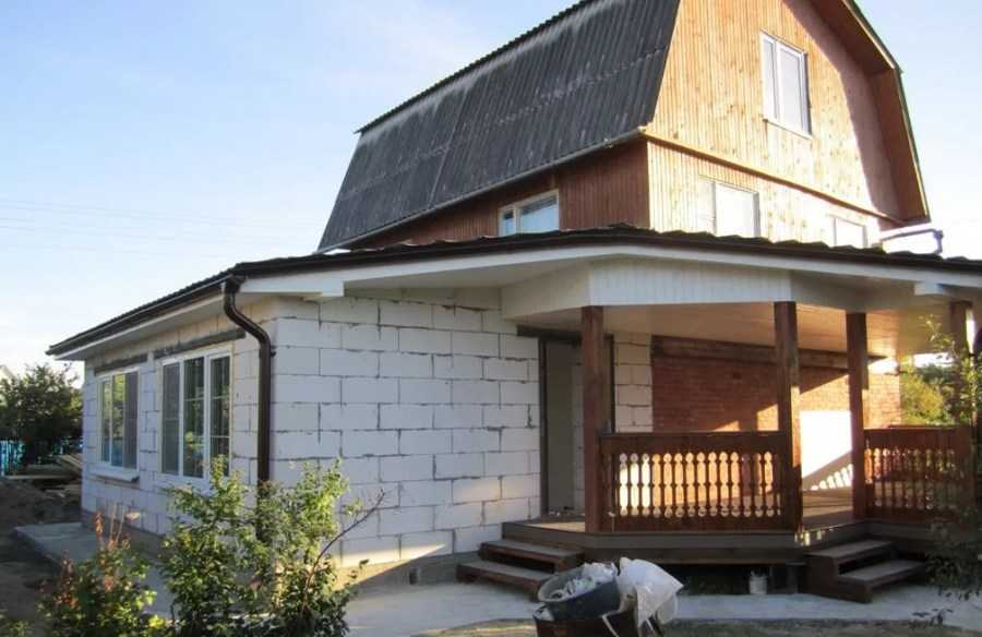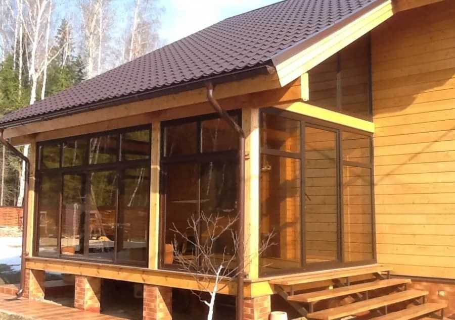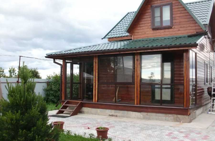 Стены, веранды пристроенной к дому, могут быть из того материала, который пошел на строительство основного здания. Иначе грунт под пристройкой может сильно просесть, и это отрицательно скажется на состоянии строения.