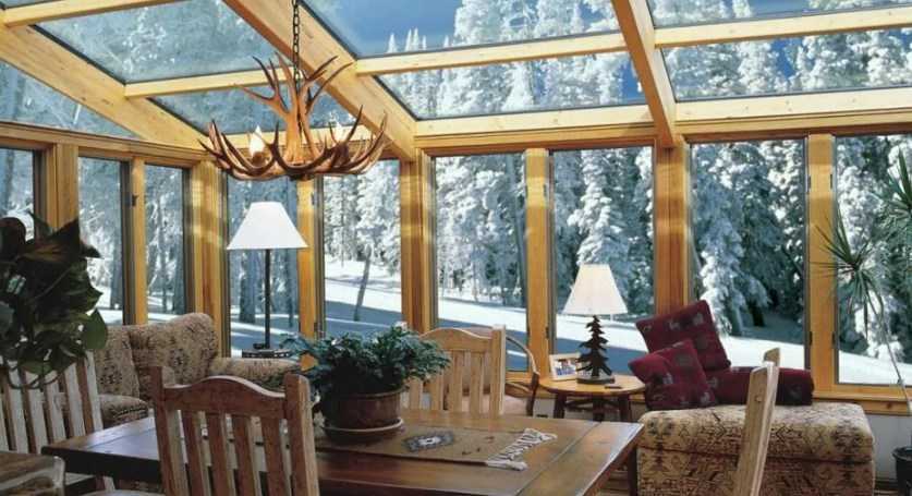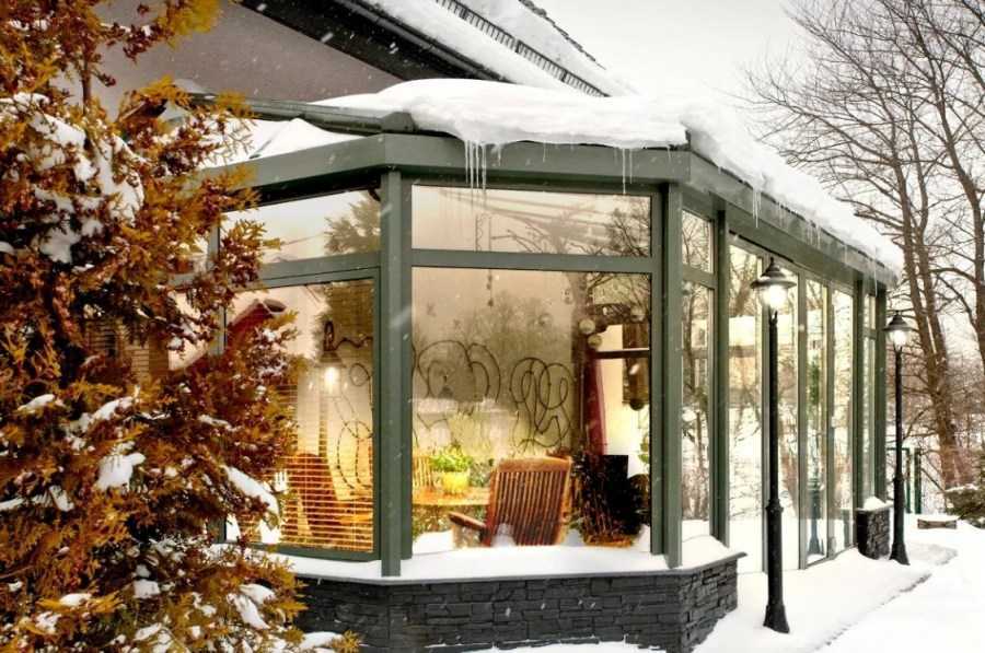 Температура зимой здесь будет держаться около 10-15 С, что вполне комфортно для коротких прогулок в теплой одежде. При этом отсутствие рам создаст ощущение открытого пространства.