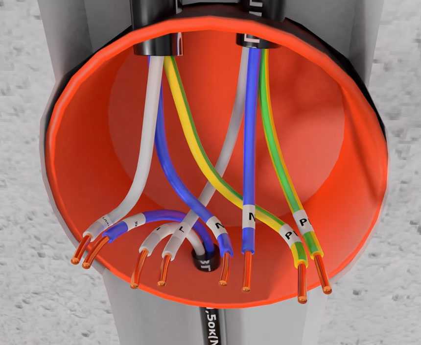 Фазовый провод с маркировкой L обычно имеет красный цвет, нулевой с маркировкой N — синий, а заземляющий с маркировкой PE — зеленый.
