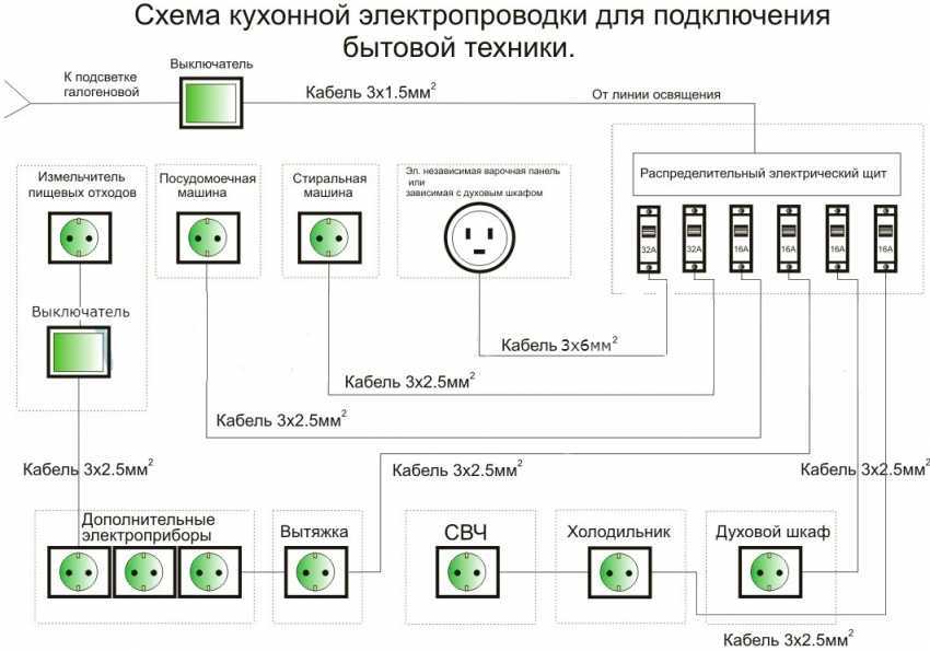 Схема кухонной электропроводки для подключения бытовой техники