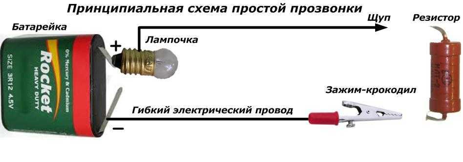 После подготовки всех необходимых элементов на их основе собирается простейшая измерительная цепочка, состоящая из контрольной лампочки, батарейки и проверяемого проводника. При правильно собранной схеме и в случае исправности тестируемого участка контрольная лампочка будет загораться. Отсутствие свечения при всех исправных элементах схемы свидетельствует об обрыве в самом проводнике.