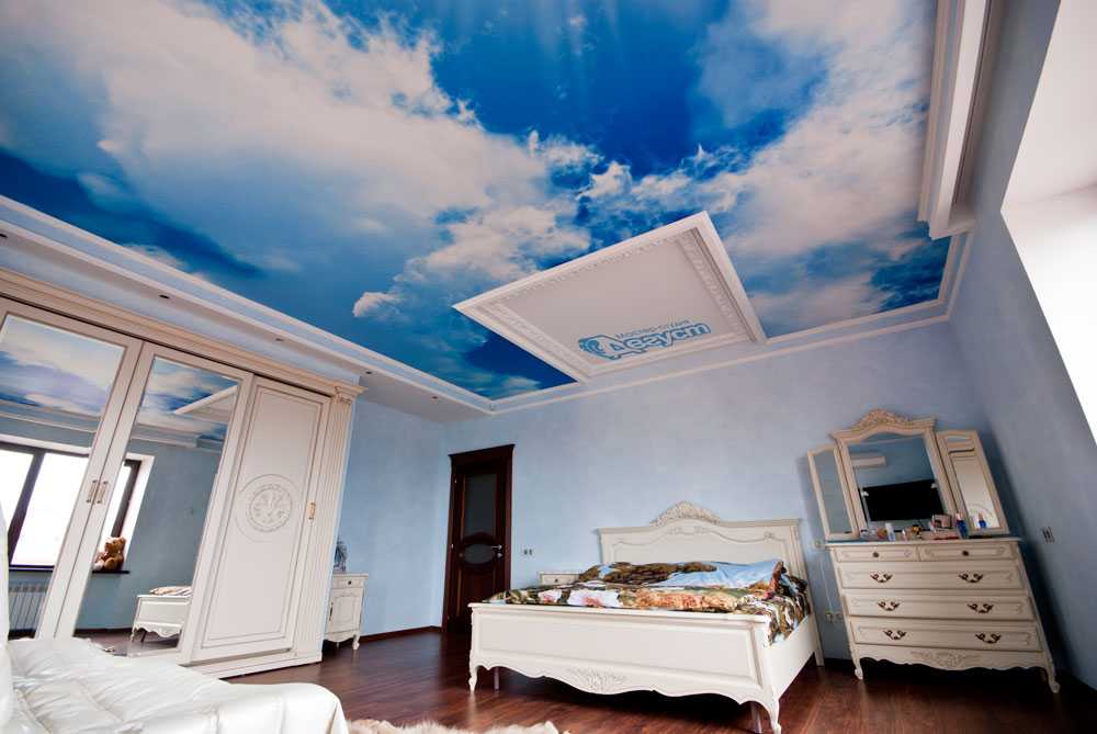 Производители идут навстречу покупателям, предоставляя самостоятельно выбрать рисунок для печати. Наиболее популярны для потолочной темы небесные сюжеты, в частности звездное небо, небесная лазурь или кроны деревьев, устремляющиеся в небо.