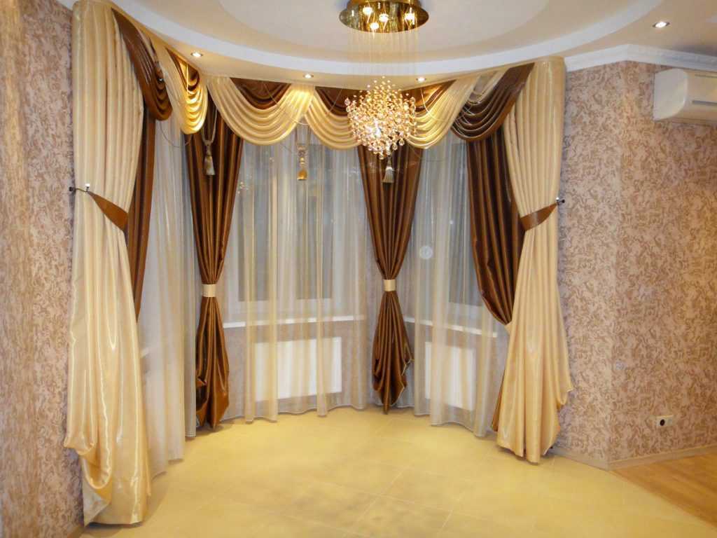 Дизайнеры предлагают карнизы, в которых сочетается сразу несколько видов креплений. На них можно размещать различные виды занавесок одновременно. Оптимальная комбинация – это струна и труба.