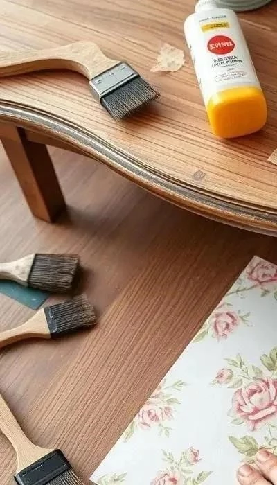 Этап 4: Нанесение изображения. Нанесите клей для декупажа на подготовленную поверхность мебели. Аккуратно приложите изображение и разгладьте его кистью или губкой, двигаясь от центра к краям, чтобы избежать образования пузырей и складок. Излишки клея аккуратно удалите мягкой тканью.