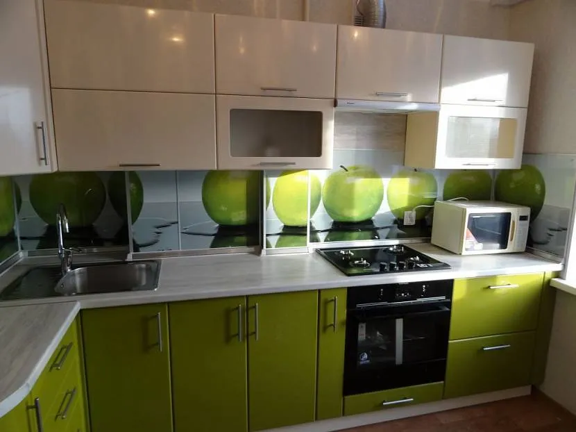 Такой контраст зрительно увеличит площадь помещения расширит стены и потолки. Дополнит дизайн яркий фартук в рабочей зоне.