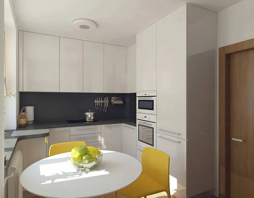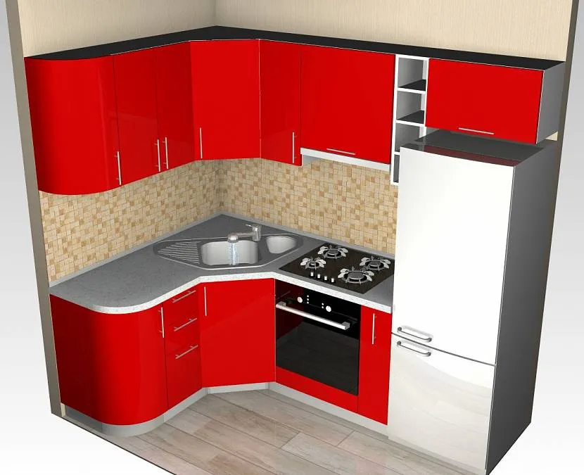 Готовый гарнитуры, как правило, не вписываются в планировку маленьких кухонь. Поэтому рекомендуем создать проект самостоятельно или обратиться к дизайнеру от фирмы, которая занимается изготовлением гарнитуров