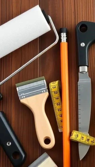 Из инструментов понадобятся: валик для нанесения клея, кисть для промазывания углов, острый нож для обрезки обоев, линейка и карандаш для разметки, а также чистая тряпка или губка для удаления излишков клея.