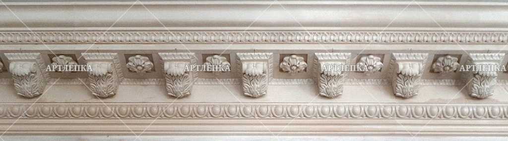 Комбинированный гипсовый карниз из комплекта литьевых и тянутых деталей
