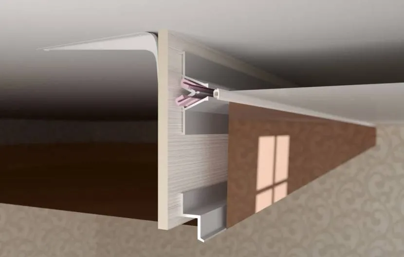 Крепление плинтуса на натяжной потолокИсточник dekorator-s.ru