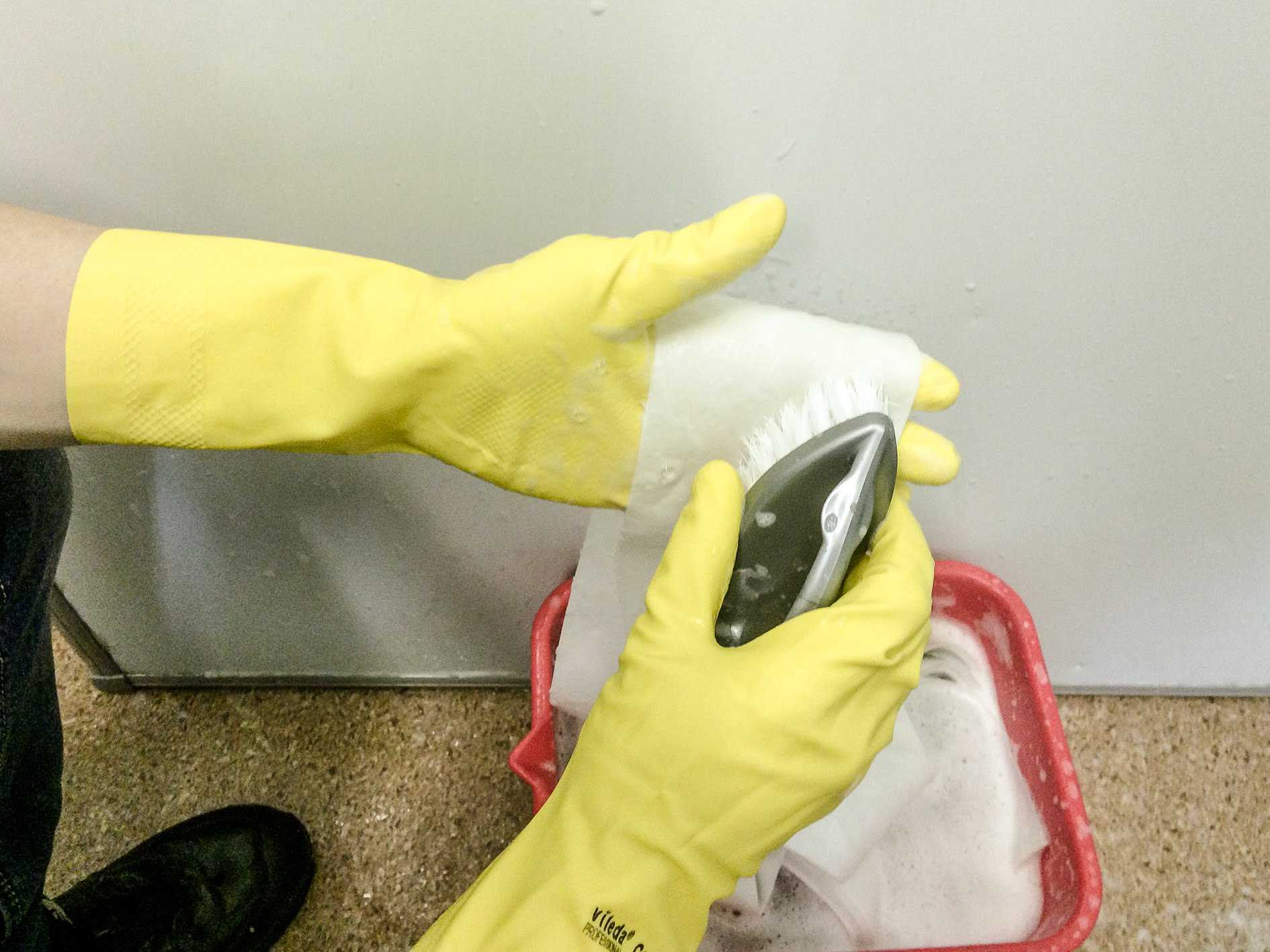 Использование жесткой губки позволяет устранить даже самое сильное загрязнение