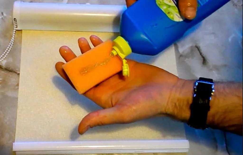 Влажная губка станет незаменимым помощником при очистке пластиковых ламелей. Достаточно на несколько минут смочить испачканные полосы водой с добавлением обезжиривающего моющего средства, окунув в него тряпку, а затем ею же, но уже тщательно отжатой, вытереть их насухо.