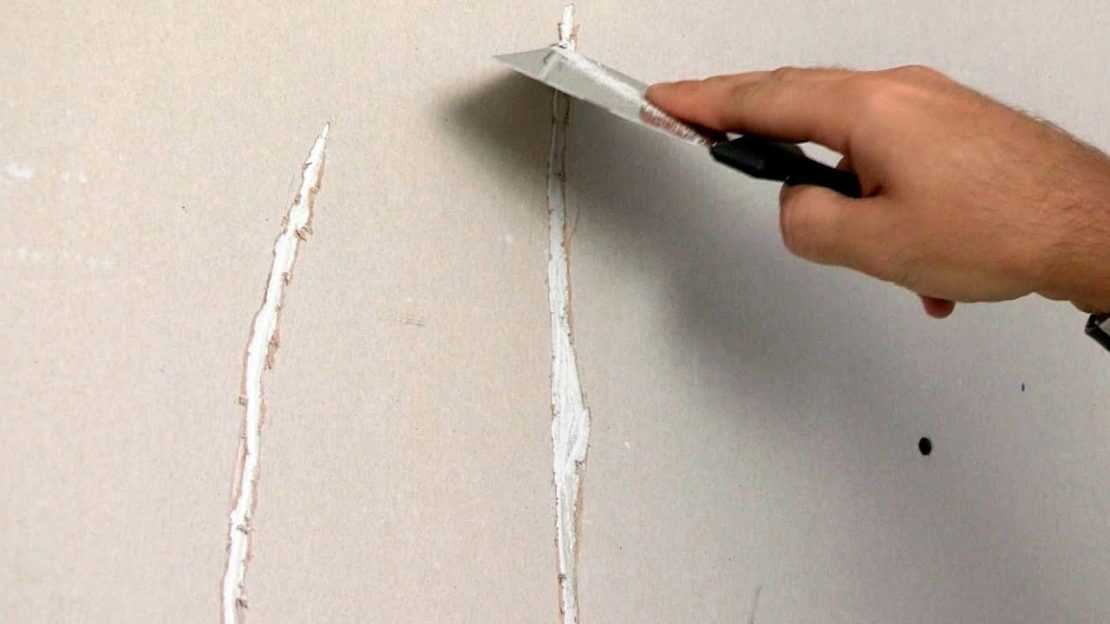 Заделка трещин на потолке из гипсокартона проводится следующим образом:
