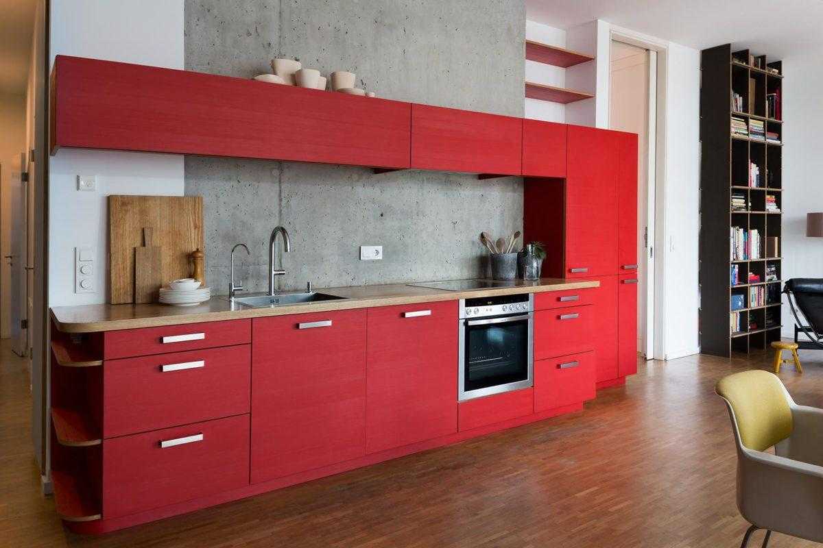 Красными могут быть даже стены, но тогда белый цвет должен преобладать в кухонном гарнитуре. Создавая подобный интерьер, следует отдавать предпочтение дорогим материалам.