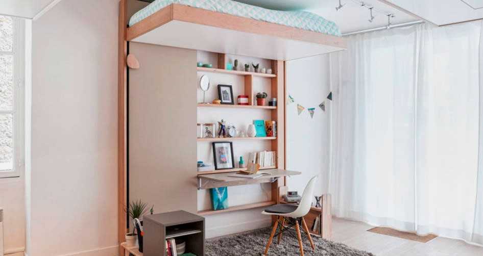 Проблема нехватки места в компактных квартирах уже несколько лет волнует и дизайнеров. Именно поэтому была придумана оригинальная конструкция, которая не только экономит место в помещении, но является его изюминкой. Это кровать под потолком, поднимающаяся наверх и опускаемая вниз при помощи специальных креплений, или кровать-чердак с приставной лестницей, которую можно использовать как для старшего, так и младшего поколения.