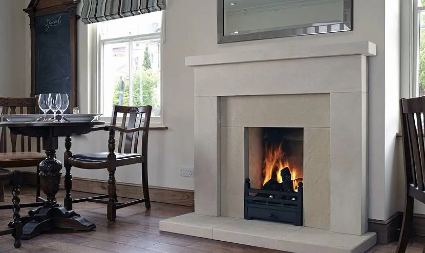 Гостиная с камином и мебелью венгеИсточник classpic.ru