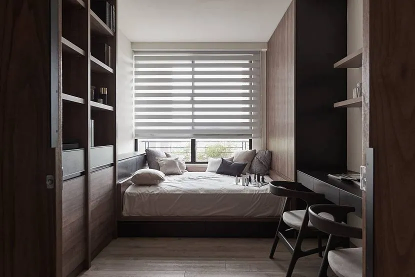 Как и все темные цвета, венге имеет свойство визуально сужать пространство. В неправильном цветовом сочетании он сделает интерьер тяжелым, темным и офисным.