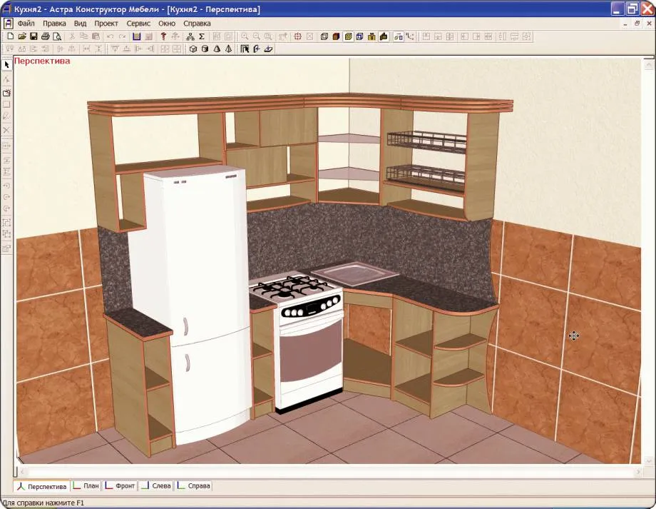 К популярным мебельным конструкторам относится, например, PRO-100. В ее демоверсии можно нарисовать кухню, но нельзя, например, экспортировать данные из проекта в таблицы (с такой таблицей удобно заказывать материалы). Поэтому часть работы придется сделать вручную.