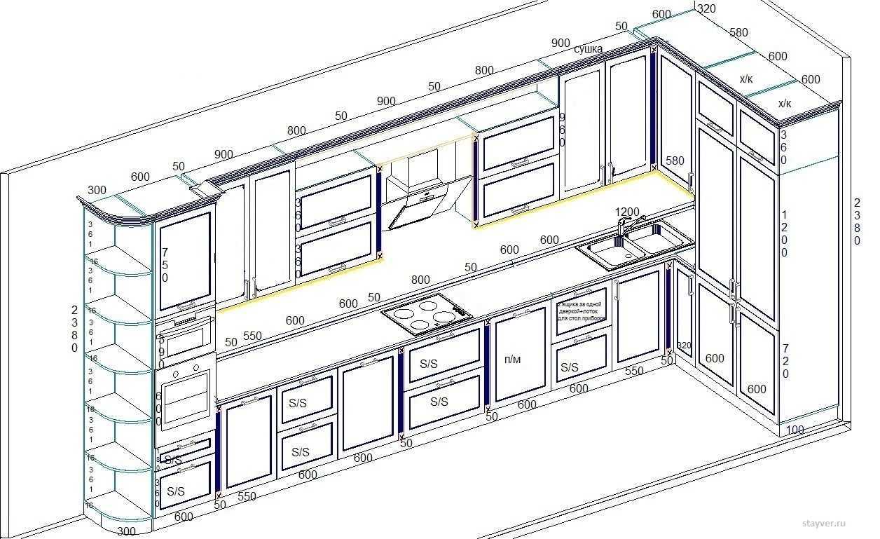 Проект самодельной кухни рассчитывают в следующем порядке: