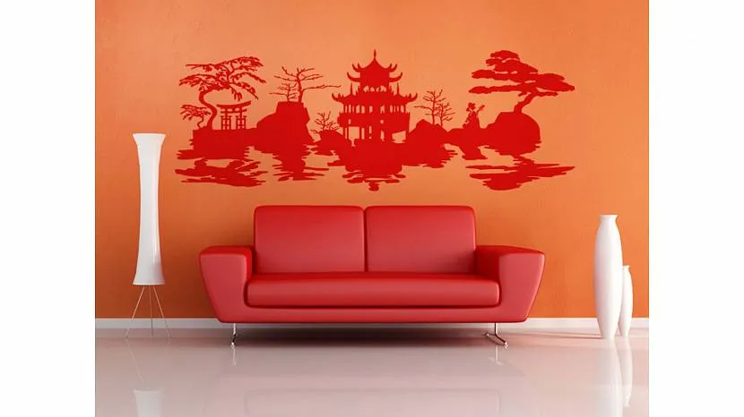 Тематический декор наклейки на стены тоже должен соответствовать теме оформления комнаты. Согласитесь, большой рисунок, на котором изображен японский сад, плохо будет смотреться в обычном среднестатистическом дизайне. Здесь вообще будет неуместна какая-либо большая яркая цветная картинка. Поэтому к выбору стикера нужно относиться очень ответственно.