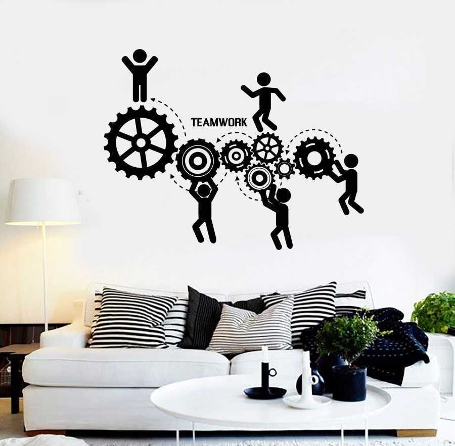 Для того чтобы создать эффектный декор комнаты или отдельной стены, можно скомбинировать несколько видов наклеек на обои. В гостиной комнате и прихожей, хорошо сочетаются наклейки-фразы с силуэтами, это придает эффект визуального расширения пространства, поэтому актуально для использования в маленьких по площади комнатах.