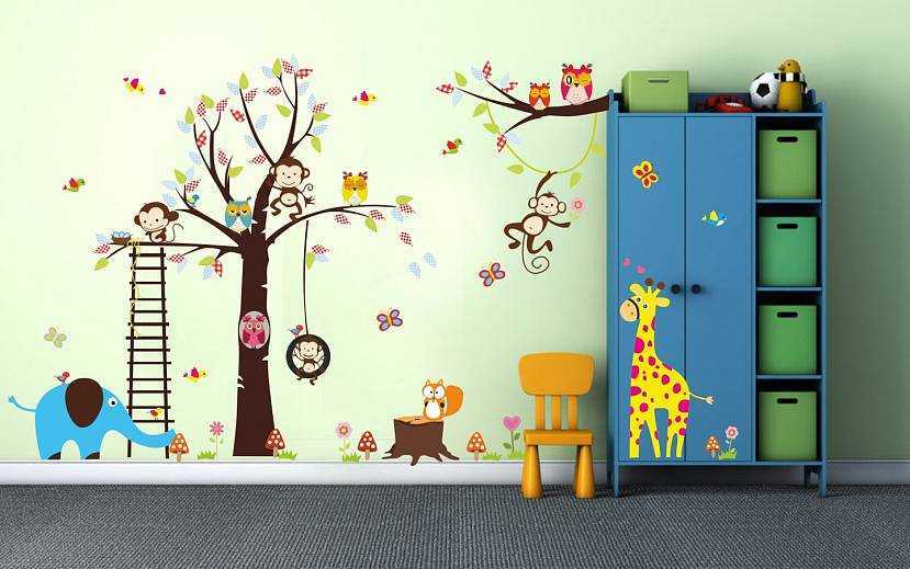 Для малышей незаменимы стикеры с любимыми героями из мультиков, детям постарше будет интересно учиться считать и узнавать буквы, если они будут наклеены прямо на стены детской.