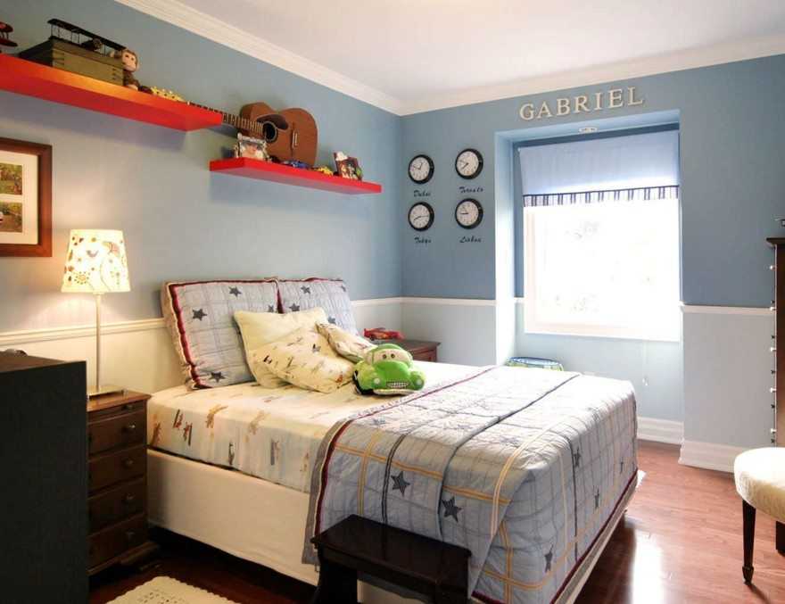 В детскую желательно устанавливать напольные виды полочек (глубиной не более 20 см), которые создают хороший обзор предметов. С узких полок ребенку будет удобней доставать вещи. Предпочтительней монтировать угловые полки из дерева – экологичные и безопасные.