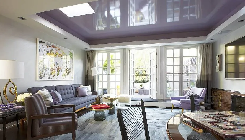 В гостиной оба варианта будут смотреться хорошо, поэтому при выборе внимание акцентируется на особенностях дизайна. Допускаются нестандартные решения, например, комбинирование глянцевого полотна с матовым покрытием. Тут все зависит от желания владельцев квартиры, предполагаемого интерьера, а также размера самой комнаты