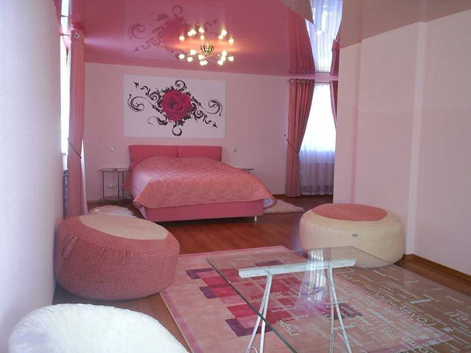 Если вы выбрали розовый натяжной потолок в интерьере, важно помнить главное правило при оформлении – умеренность. Обилие этого цвета в квартире может сделать из нее «домик для куклы»