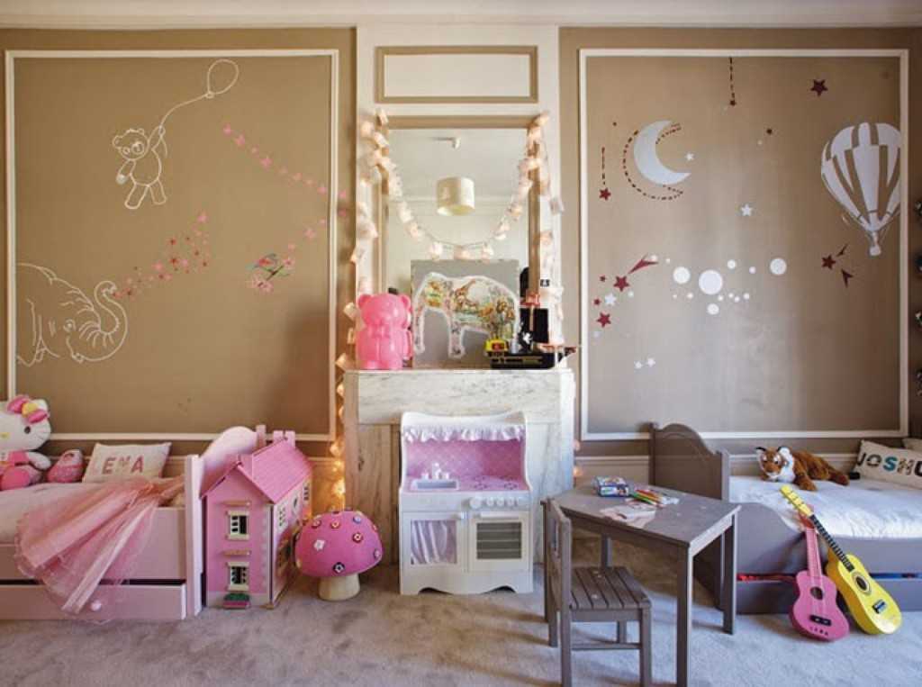 При помощи оригинального декорирования места отдыха удается полностью видоизменить окружающий интерьер. Например, стену над кроватями можно оформить декоративными буквами или другими персональными аксессуарами. Места для сна также застилают разными по цвету покрывалами, размещают возле кроватей непохожие друг на друга коврики или нарядно украшают изголовье девчачьего спального ложа.