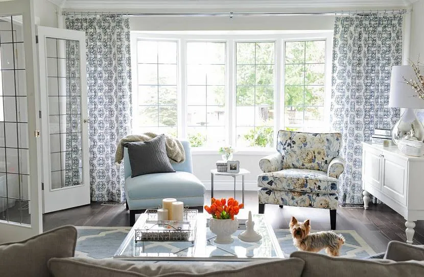 Стиль позволяет комбинировать разные цвета и материалы. В дизайне одной комнаты будут гармонично смотреться пастельные обои, например с геометрическими узорами одного цвета, но разной насыщенности. Мебель имеет простые формы, а декоративные предметы подчеркнут стилистику комнаты.
