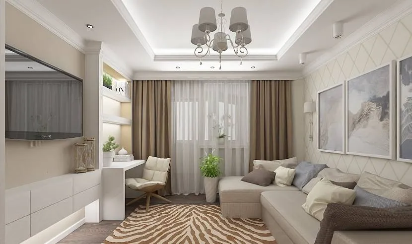 Дизайн стильной гостиной в пастельных тонахИсточник vsaunu777.ru