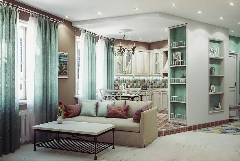 Стиль прованс ассоциируется с простором и очарованием бескрайних лавандовых полей. Пастельные акценты на белом или молочном фоне сделают интерьер воздушным и нежным. Стены могут быть отделаны однотонными обоями, штукатуркой, обоями с растительным рисунком или изображением фрески.