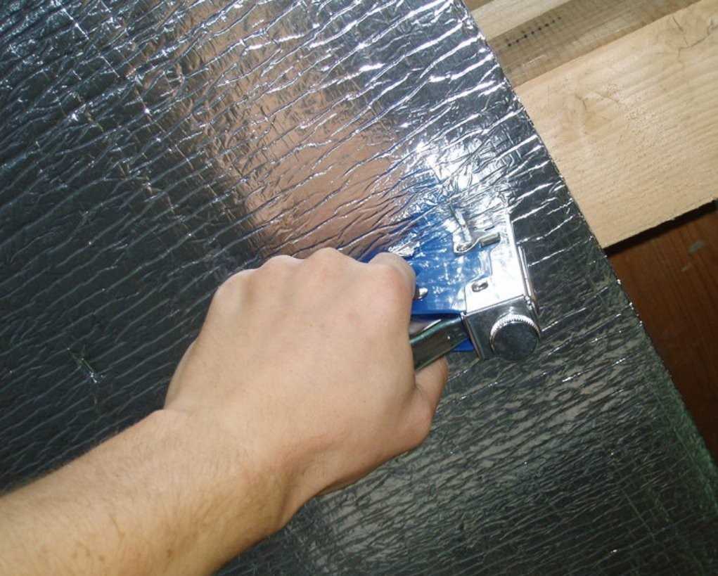 Различают внутреннюю и внешнюю. Материал закрепляется по периметру с помощью степлера, стыковка производится внахлест приблизительно 10-15 сантиметров, а сам стык склеивается скотчем. Сверху необходимо забить деревянные рейки, которые представляют собой обрешетку теплоизоляции.
