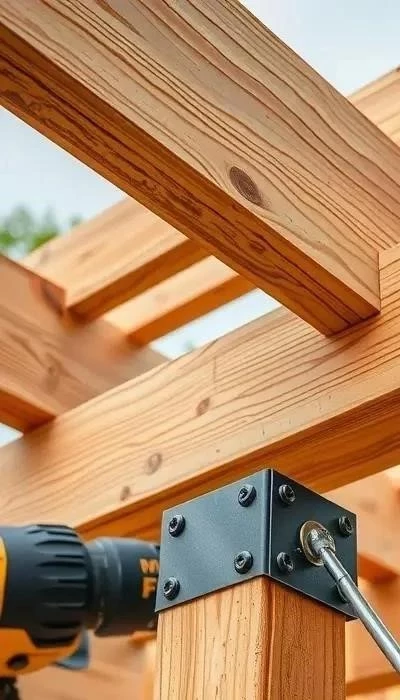 Для надежной сборки перголы необходимы качественные крепежные элементы. Саморезы по дереву с антикоррозийным покрытием – оптимальный выбор для соединения деревянных деталей. Углы и пластины усилят конструкцию в местах соединения опор и перекладин.