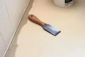 Для ремонта повреждений понадобятся шпатель, затирка и малярная кисть. Шпателем наносят на участок разведённую штукатурную смесь. Выемку заполняют до краёв и заравнивают, удаляя лишнее.
