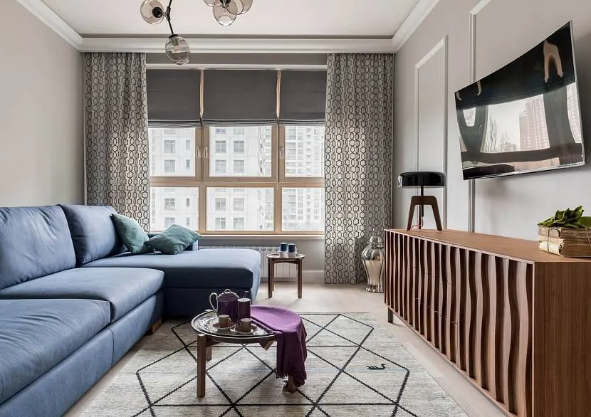 Руководствуясь дизайном кухни-гостиной, вы можете выбрать одну из следующих разновидностей штор в гостиную, совмещенную с кухней: