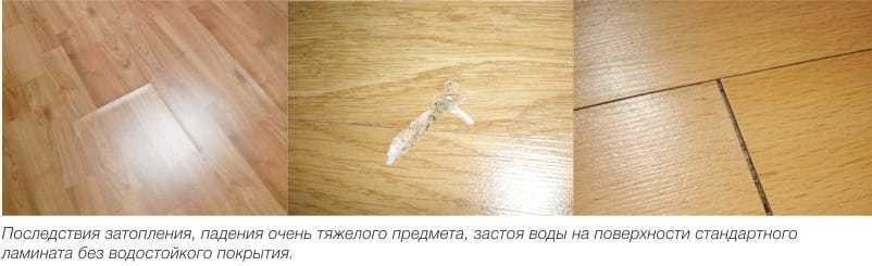 Качественные современные ламинированные панели практически не боятся воды – в качестве защитного слоя на них наносятся специальные водоотталкивающие составы на основе воска. Однако стыки между панелями обрабатывают далеко не все производители, а потому эти части покрытия остаются восприимчивыми к влаге.