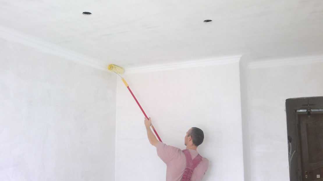 Совет! Чтобы добиться идеального окрашивания своими руками, нужно наносить один слой в вертикальном направлении, а второй – в горизонтальном. Тогда на потолке не будет разводов, полосок, неравномерного распределения краски.