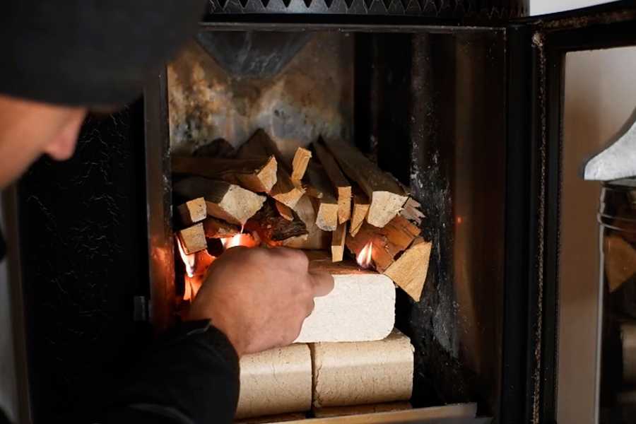 Евродрова идеально подходят для отопления бани. Перед закладкой брикетов в печь её хорошо очищают от остатков предыдущего горения. На колосник укладывают большое количество щепок или других легковоспламеняющихся материалов. На них кладут брикеты. Они поджигаются горящей щепой.