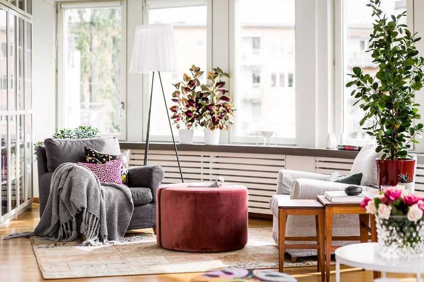 Оригинальный способ маскировки батареи отопления поможет расширить подоконник и использовать конструкцию в качестве предмета обстановки.