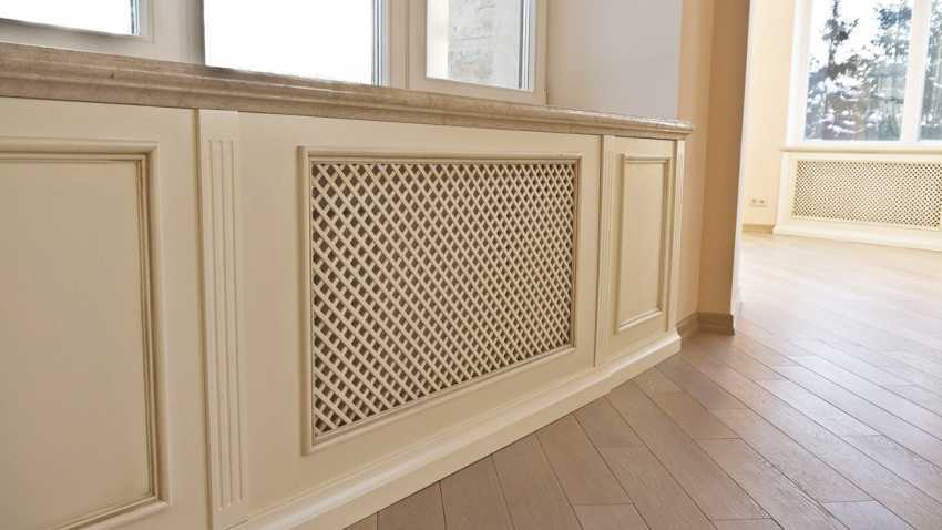 Цена на решетку для радиаторов зависит от выбранного материала, поэтому всегда можно найти подходящий вариант. Учитывается и местоположение батареи. Если она расположена на стене, установите напольный короб, позволяющий обеспечить всестороннюю защиту.
