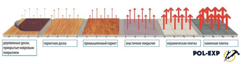 Как отдельные напольные покрытия влияют на проход тепла от системы обогрева в помещение