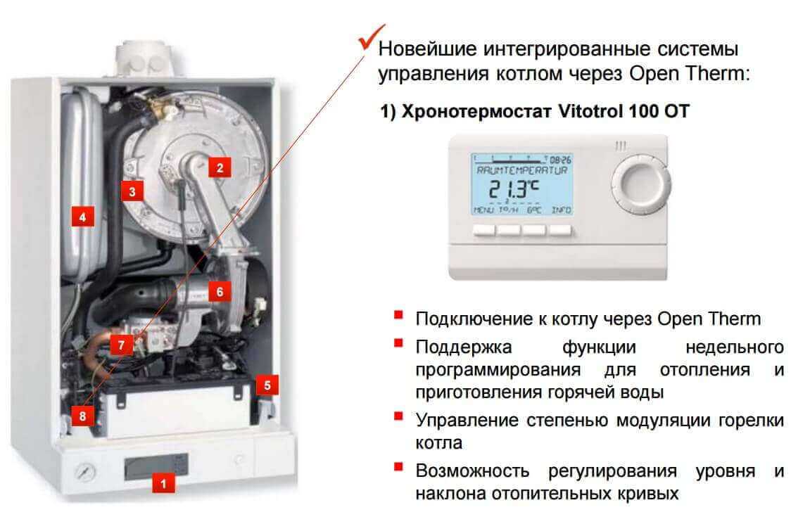 Отличия и особенности двухконтурных котлов рассмотрим на примере Viessmann Vitopend 100-W.