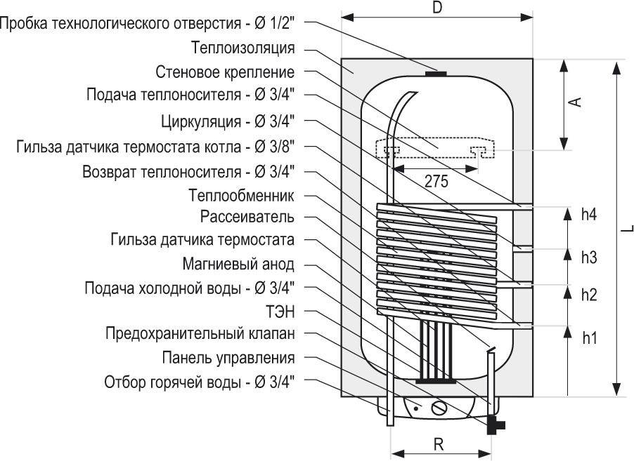 Стандартное оборудование подразделяется на одно и двухконтурное. Последние оснащены змеевиком. Их мощность варьирует в пределах от 6 до 31 кВт.