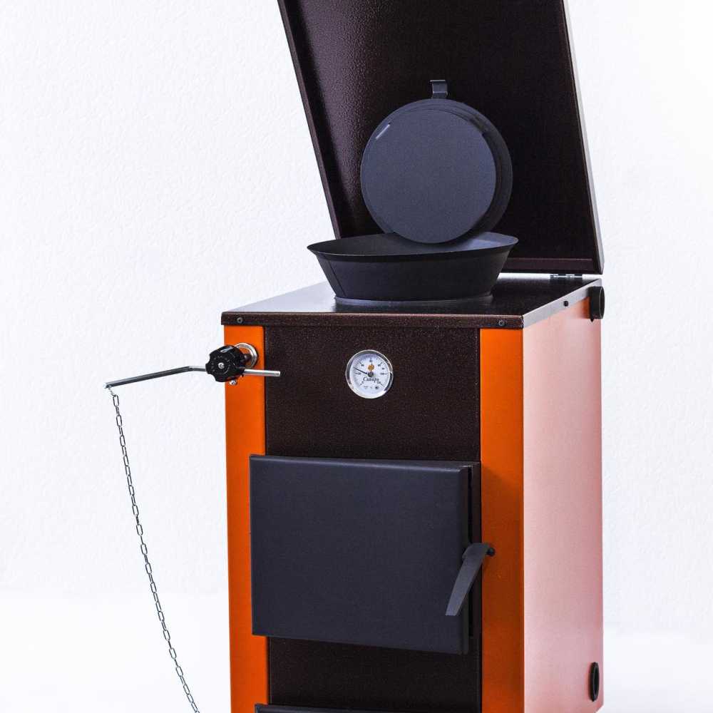 Под омываемой колосниковой решеткой находится зольник, где собираются отходы от сгорания. На дверце камеры установлена заслонка, регулирующая подачу воздуха в топку. Она управляется автоматическим регулятором тяги и цепочкой.