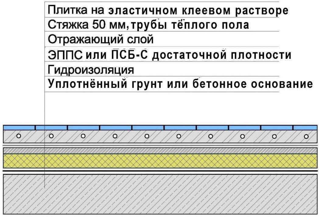 Черновая стяжка пола по грунту под теплый пол технология укладки под плитку. Теплый пол по грунту в частном доме. Устройство, монтаж и подключение к сети