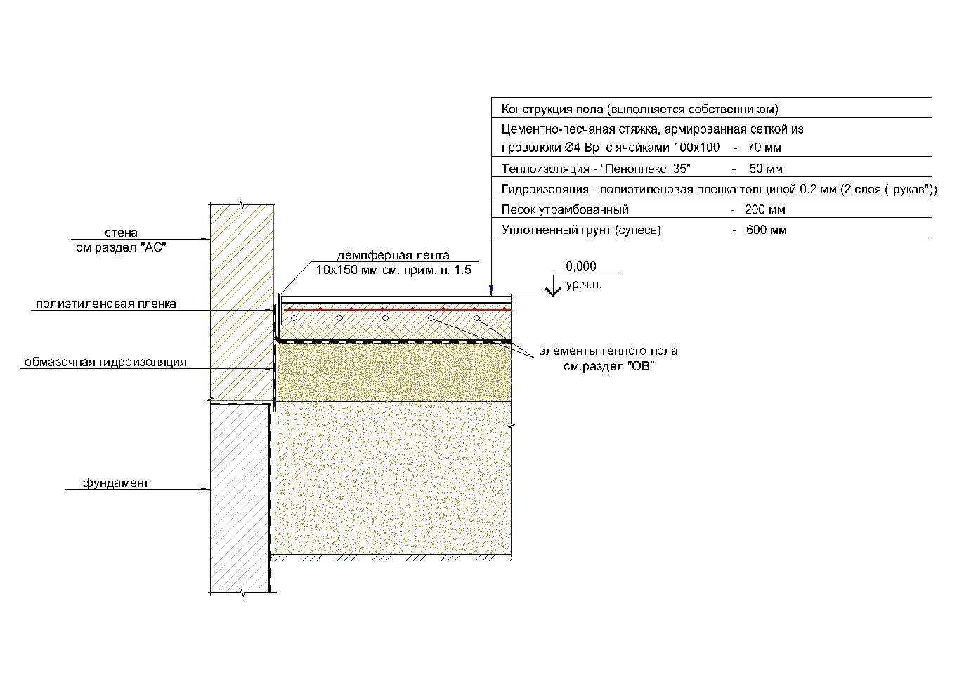 Рис. 5. Пол по грунту примыкает к стенке ленточного фундамента